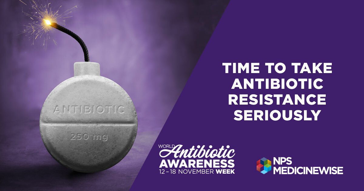 Videos, messages and other resources will be shared by NPS MedicineWise on Twitter, Facebook and LinkedIn. Be sure to follow us, share our posts and join the conversation at any time throughout the week to learn more about the problem of antibiotic resistance and appropriate use of antibiotics.