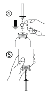 Take the syringe and put it in the adaptor opening (figure 4). Turn the bottle upside down (figure 5).