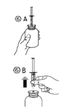 Turn the bottle the right way up (figure 6A). Remove the syringe from the adaptor (figure 6B).