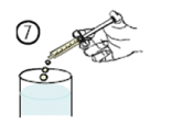 Empty the contents of the syringe in a glass of water or baby's bottle by pushing the piston to the bottom of the syringe (figure 7).
