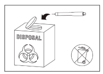 Throw away the packaging box, needle caps, peel tab, and the instructions for use in the household waste.