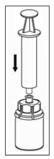 - Draw air into an empty, sterile, syringe. Use the syringe provided with the product or a silicone-free syringe. While the product vial is upright, connect the syringe to the Mix2Vial™’s Luer Lock fitting. Inject air into the product vial.