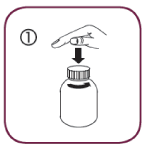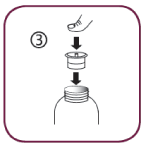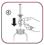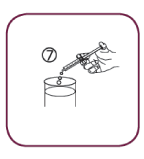 1. Empty the contents of the syringe in a glass of water by pushing the piston to the bottom of the syringe. Drink the whole contents of the glass. Close the bottle with the plastic screw cap.