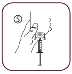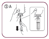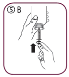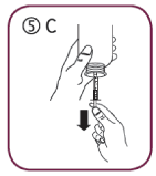 Fill the syringe with a small amount of solution by pulling the piston down (5A), then push the piston upward in order to remove any possible bubble (5B). Pull the piston down to the graduation mark corresponding to the quantity in milliliters (mL) prescribed by your doctor (5C)
