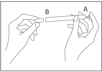 - Remove the pessary from the blister. Squeeze the cup end of the applicator (B) between your thumb and index finger to slightly flatten the cup.