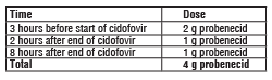 Probenecid tablets are given to lower the risk of kidney damage. You must take 3 doses of probenecid tablets orally on the same day as EMPOVIRas shown in the following table: