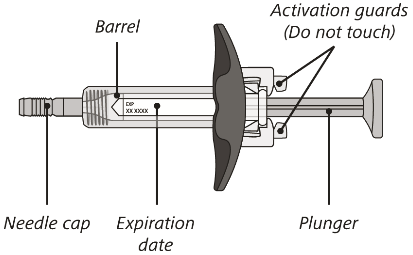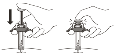 Slowly inject all of the medicine by gently pushing the plunger all the way down until it touches the activation guards.