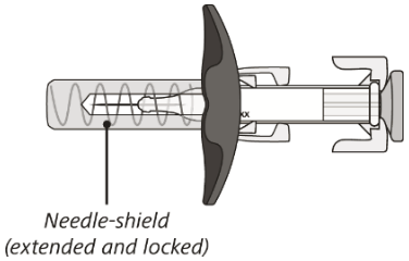 The syringe has a needle-shield that automatically covers the needle when the injection is complete.