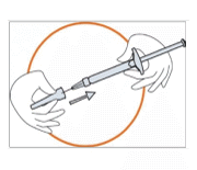 - Remove the cap from the end of the pre-filled syringe by unscrewing the cap.