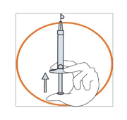 - Hold the syringe in one hand between two fingers with your thumb at the bottom of the plunger.