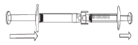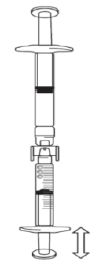- Turn the connected syringes so that the pre-filled syringe is on top (see below image).