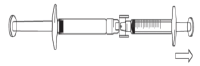 - To start transfer of FIRAZYR solution, push the pre-filled syringe plunger (on far left of the below image).