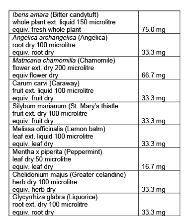 1ml (20 drops) IBEROGAST Oral Liquid contains: