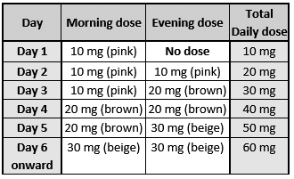 - Once the recommended dose has been reached, you will only get the 30 mg tablet strength in your prescribed packs.