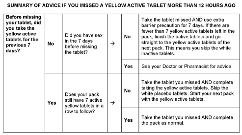 Each blister pack contains 21 yellow active tablets and 7 placebo tablets.