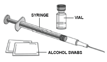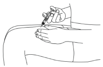 Thoroughly wash your hands with soap and warm water. Wipe the injection site with an alcohol swab. DO NOT touch this area again before giving the injection.
